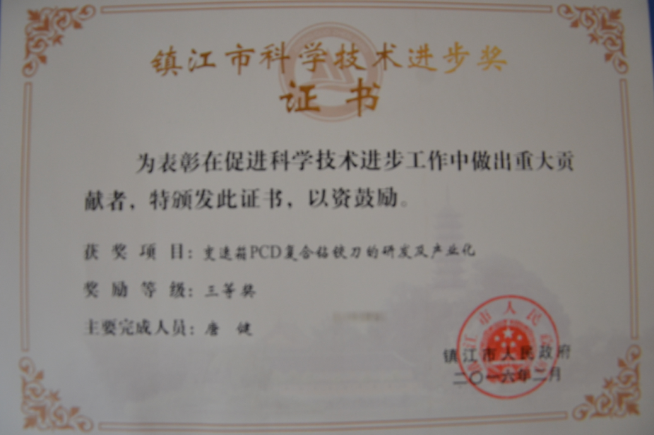 多年來,企業(yè)通過ISO9001國際質(zhì)量體系認(rèn)證,被中國中輕產(chǎn)品質(zhì)保中心授予“全國金剛石制造行業(yè)質(zhì)量放心滿意單位”,獲得江蘇省高新技術(shù)企業(yè)稱號,榮獲江蘇省小巨人稱號,變速箱PCD復(fù)合鉆鉸刀獲省高新技術(shù)產(chǎn)品等等。